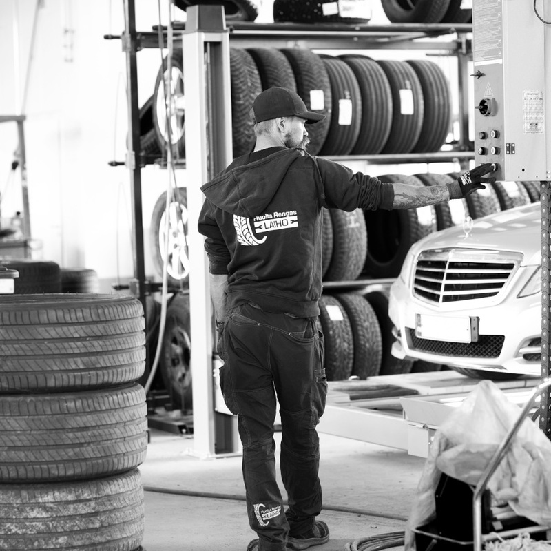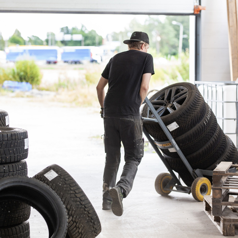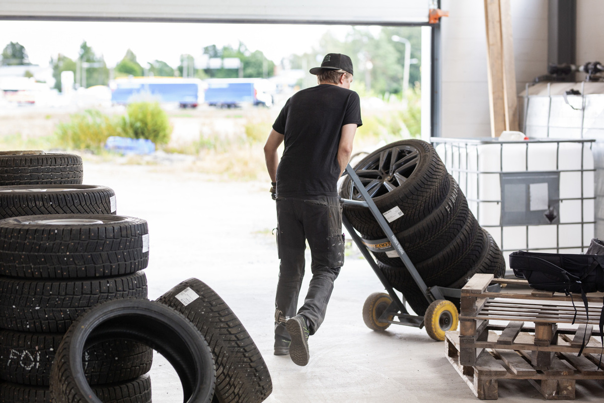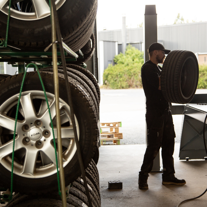 Rengashotellimme on turvallinen tapa säilyttää renkaat: palvelu sisältää säilytyksen lisäksi renkaiden pesun ja vakuutuksen.